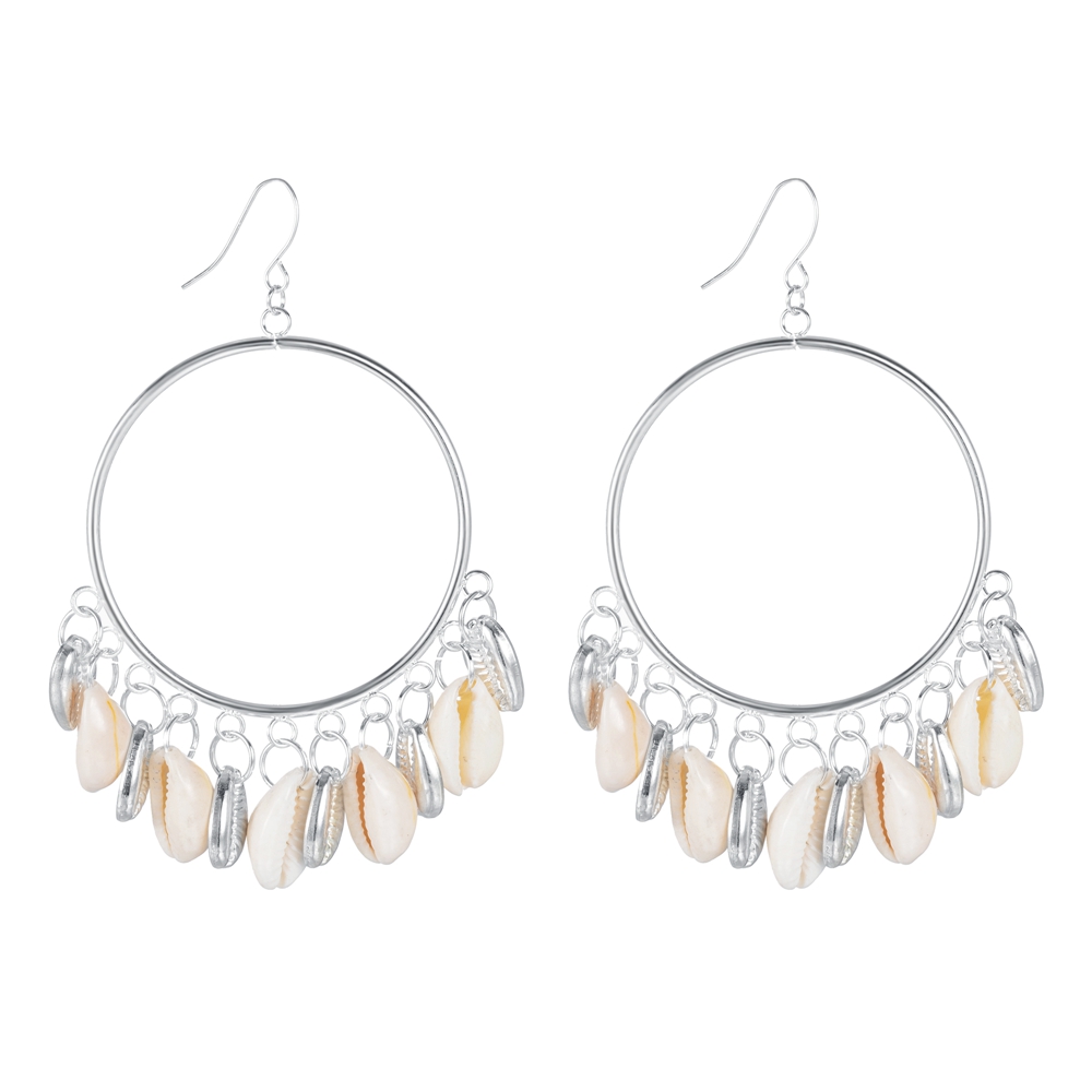 Bohemian Gold Plated Natural Sea Shell Circle Tassel Earrings Statement Cowrie Shell Earring For Women