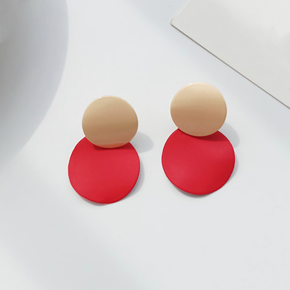 Contrast color geometric round metal earrings with individual studs