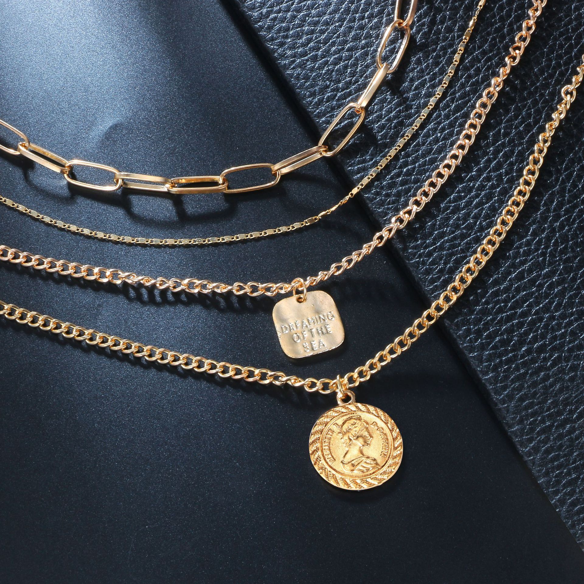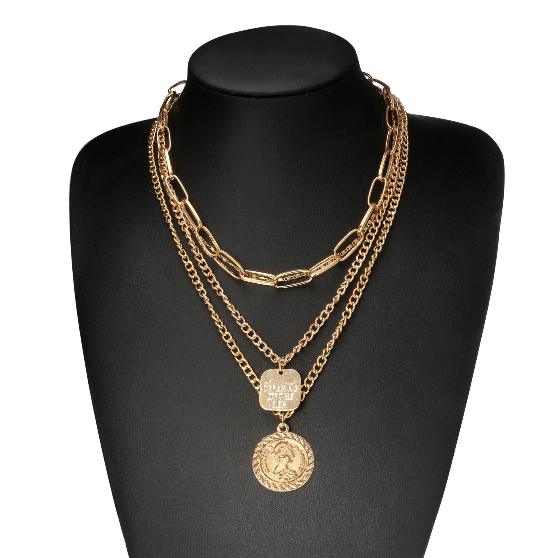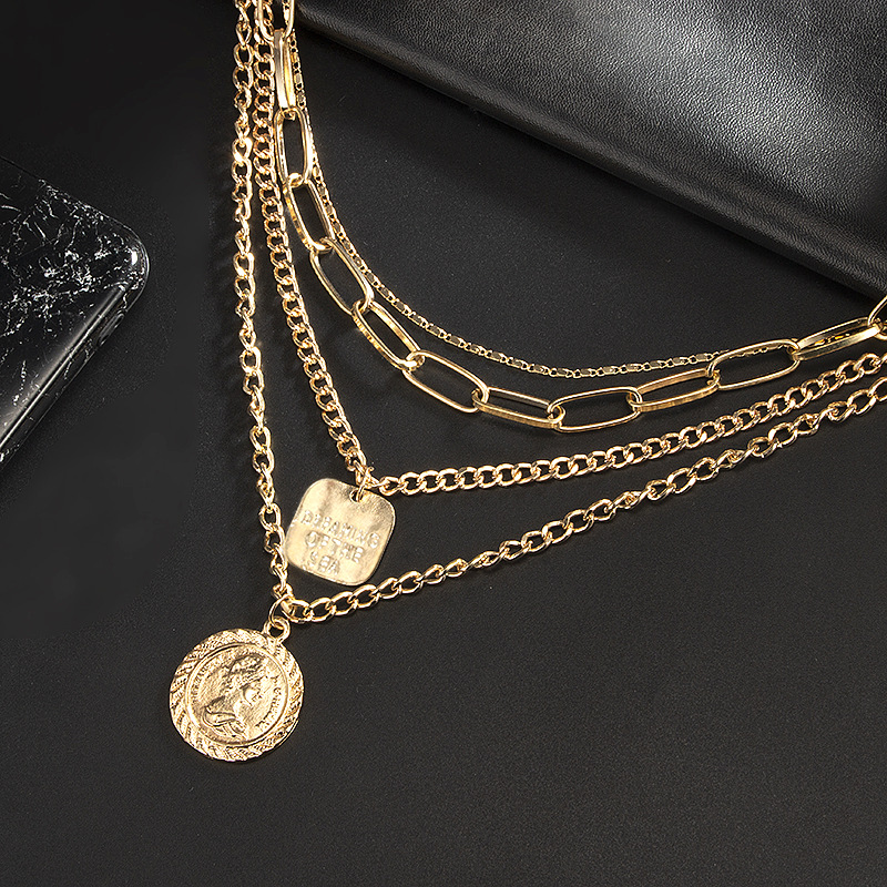 - ♥UNIQUE DESIGN♥ Layered necklace design with Queen Elizabeth coin, coin front and back different prints, and consists of three different style chains, fashion and elegant.