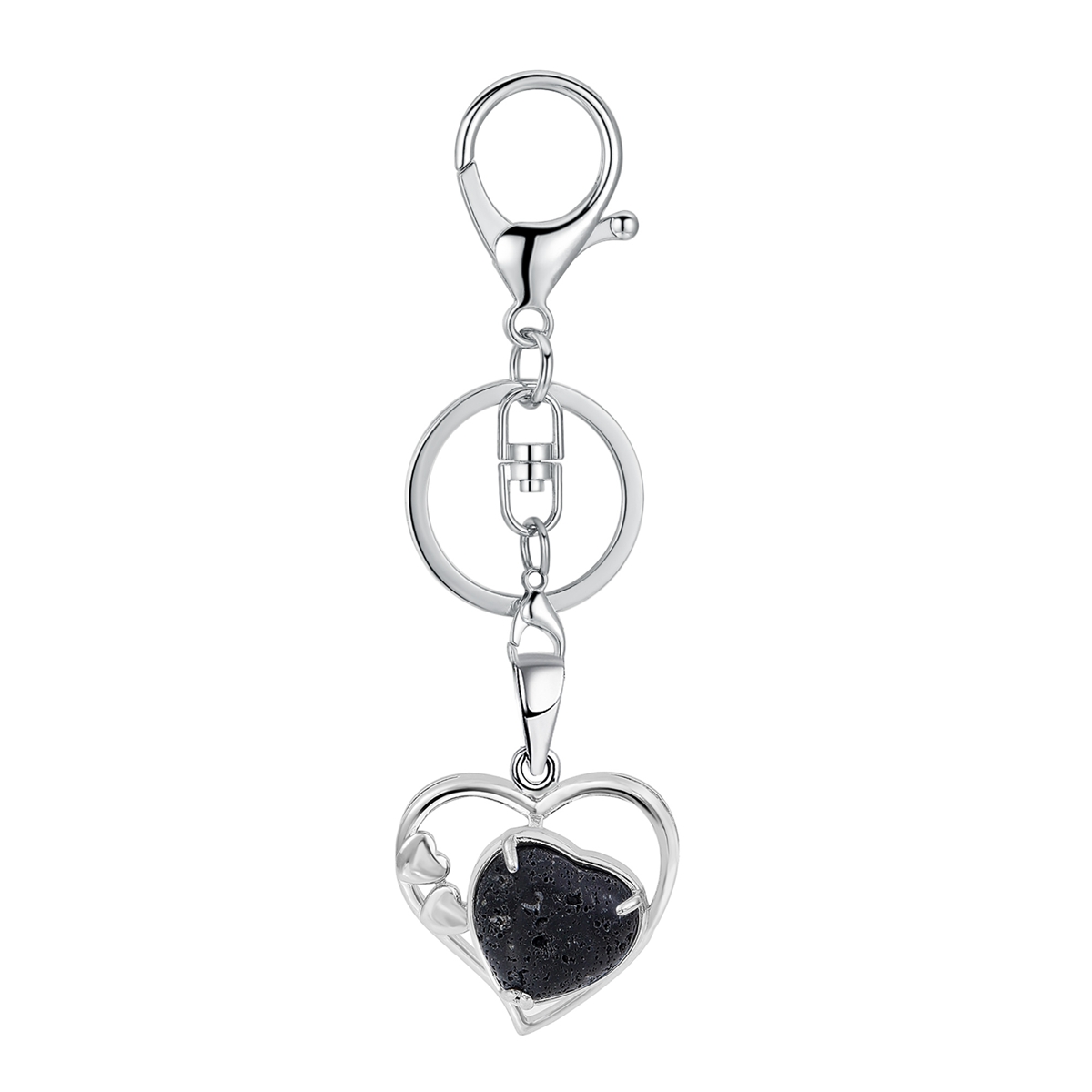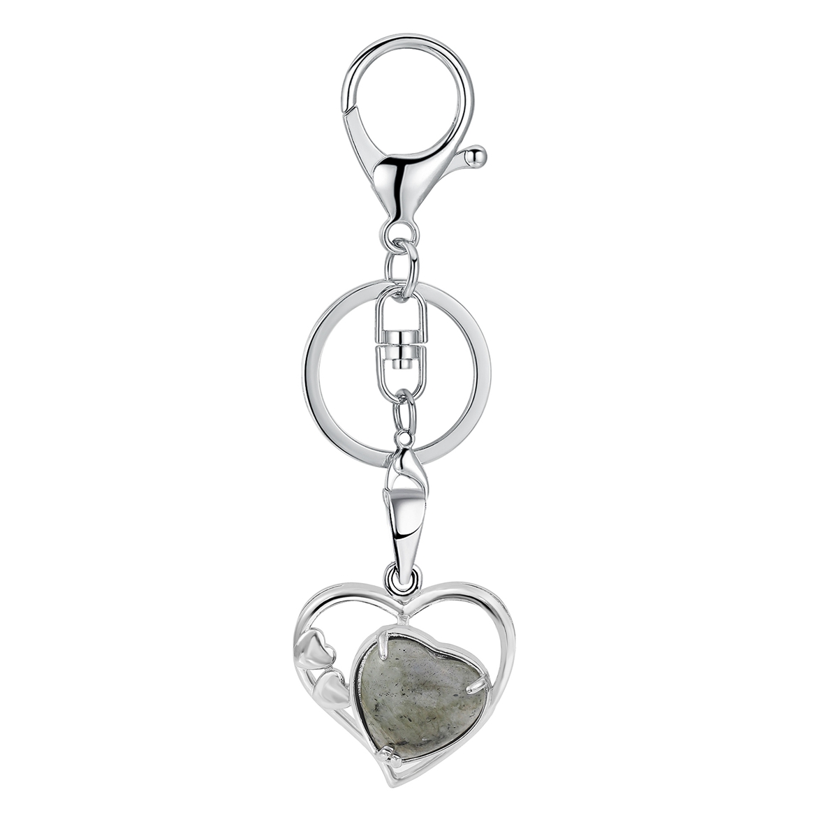 Wholesales Silver Key Chain Accessories Keys Natural Healing Crystal Hollow Heart Stone Keychain for Bag Car key Rings
